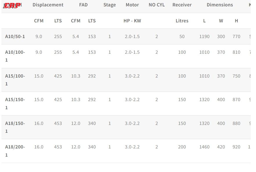 Single Stage – Two Cylinder Model 400V 3 PHASE 50HZ